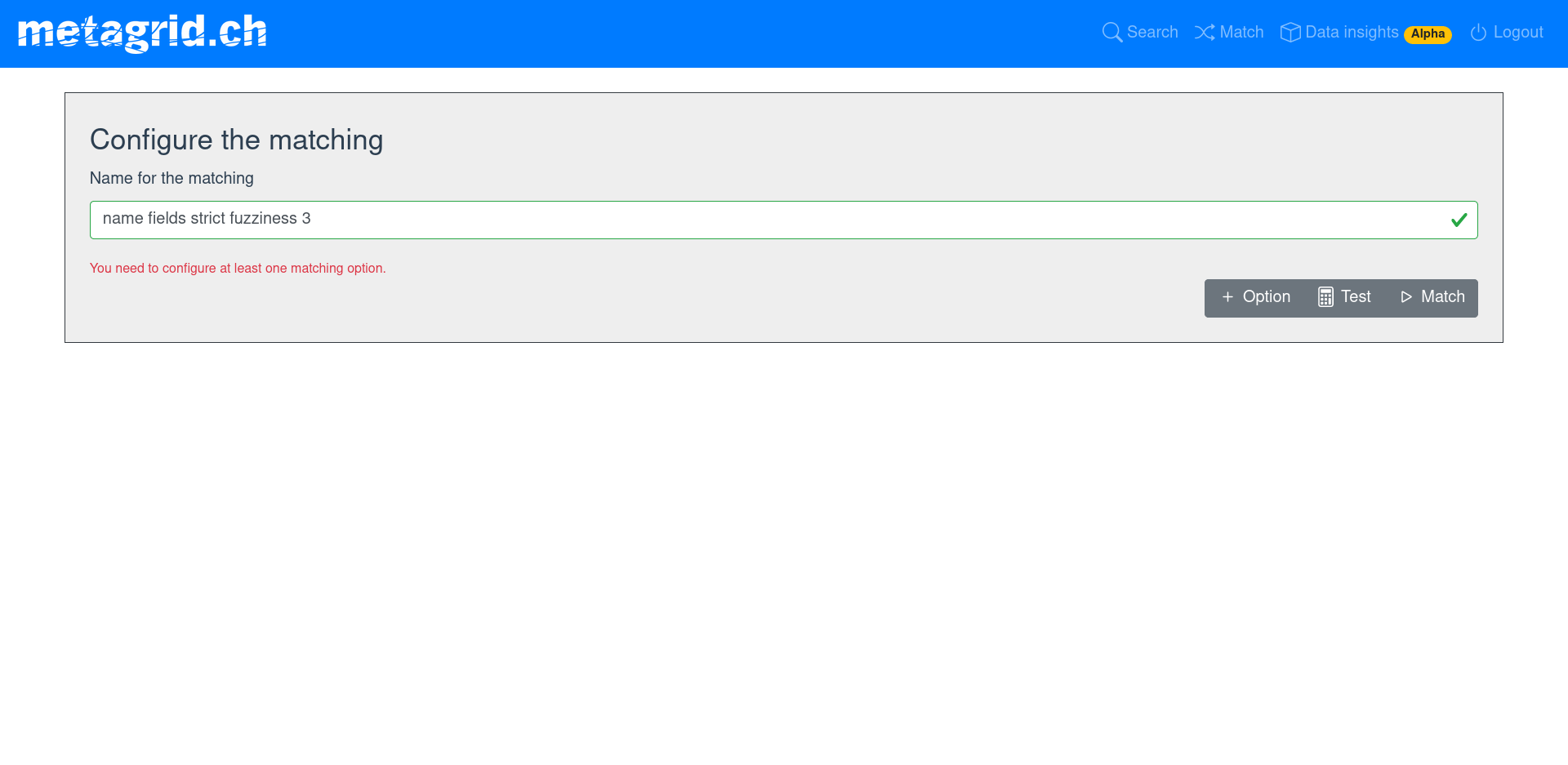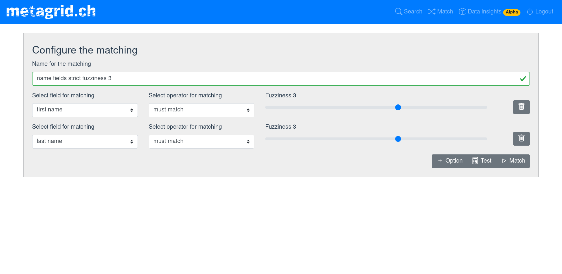 Matching is a helpful tool to connect your data with other providers. Metagrid provides an assistant to faster match your data. You can create a matching algorithm and click through the proposals.